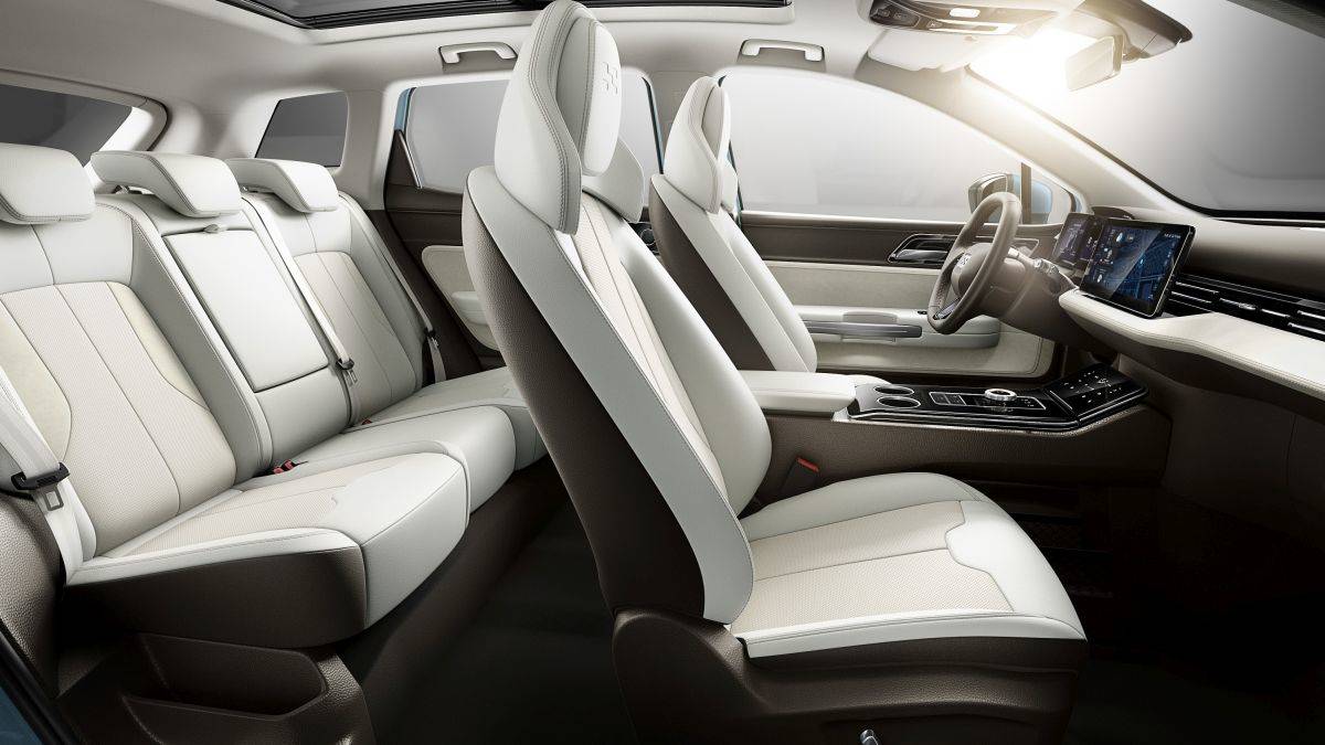 Achter de 60/40-rugleuning van de achterbank past dankzij de regelmatige vormen gemakkelijk 532 liter bagage: een aardig koffervolume. Bovendien worden passagiers van de genoemde zitrij serieus in de watten gelegd, want de beenruimte is die van zeer dure limousines waardig, zelfs met iemand van een 1m80 achter het stuur. Over het stuur gesproken, dat heeft een bijzonder originele vorm, met daarnaast een groot scherm en digitale bediening.