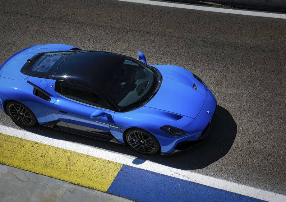 Een andere testpiloot vergezelt me voor mijn kennismaking met de MC20 op het circuit. Gelukkig heeft Andrea hem gebrieft: ik heb toestemming om aan te vallen. Maar eerst het beestje leren kennen. Eerst en vooral: hij is prachtig. Spectaculair maar elegant. Een unieke lijn, die perfect overeenkomt met het idee dat ik heb van een Maserati, zonder opzichtig te zijn, maar wel karaktervol. De naar boven openzwaaiende deuren benadrukken dat dit een uitzonderlijk voertuig is. Aan boord klimmen van het carbon chassis, dat in samenwerking met Dallara werd ontwikkeld, valt best mee.